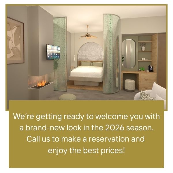 We offer you 30 standard and 6 suite rooms with sea view, swimming pool and olive trees. You can enjoy the fireplace in our suites.
